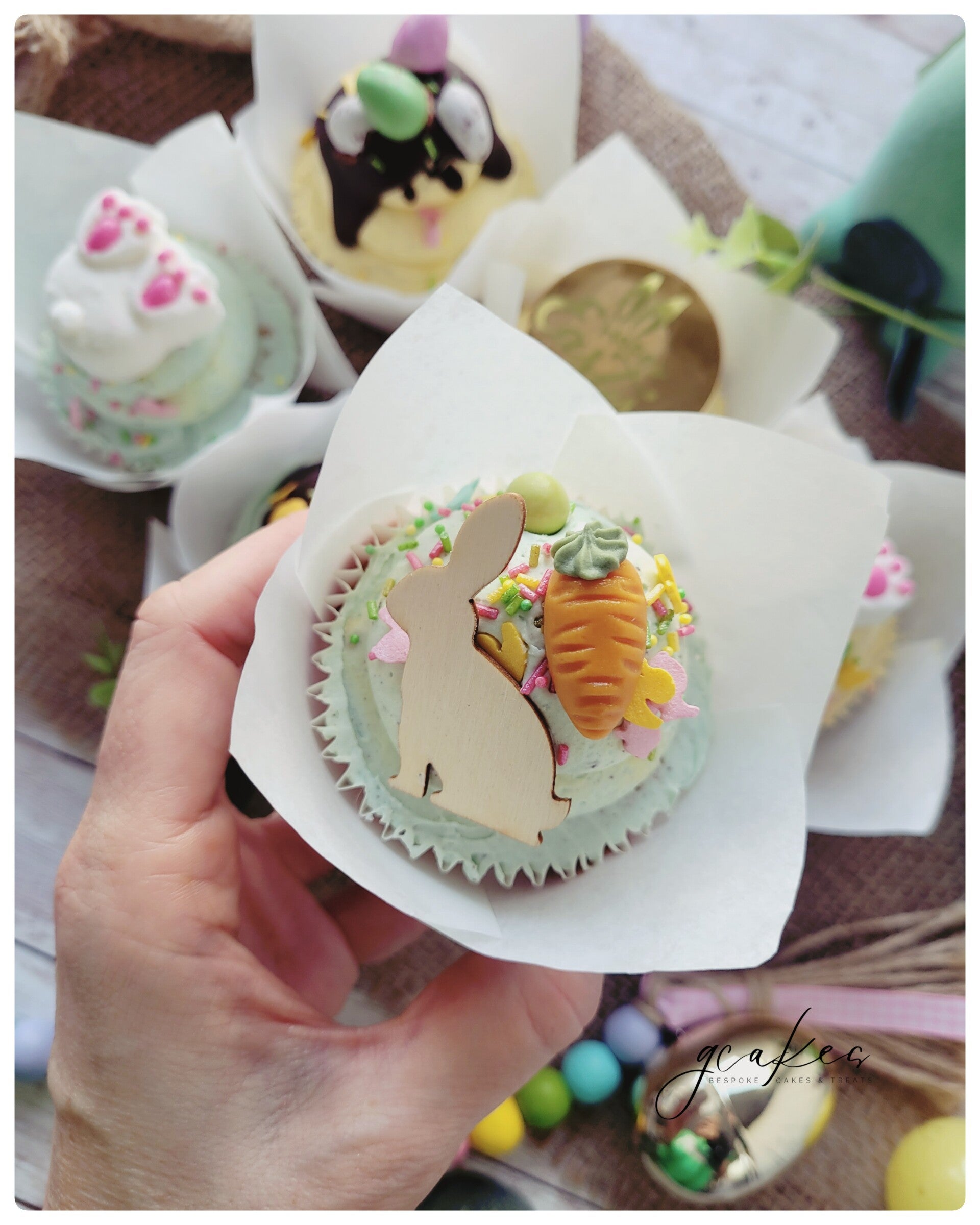 These comes in a beautiful gold cupcake box, with satin ribbon & Easter tag.