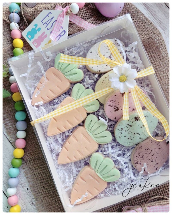 An adorable selection of Easter fondant decorated sugar cookies...great for those of you who do not like chocolate! Each box will come in clear box, satin ribbon and tag.