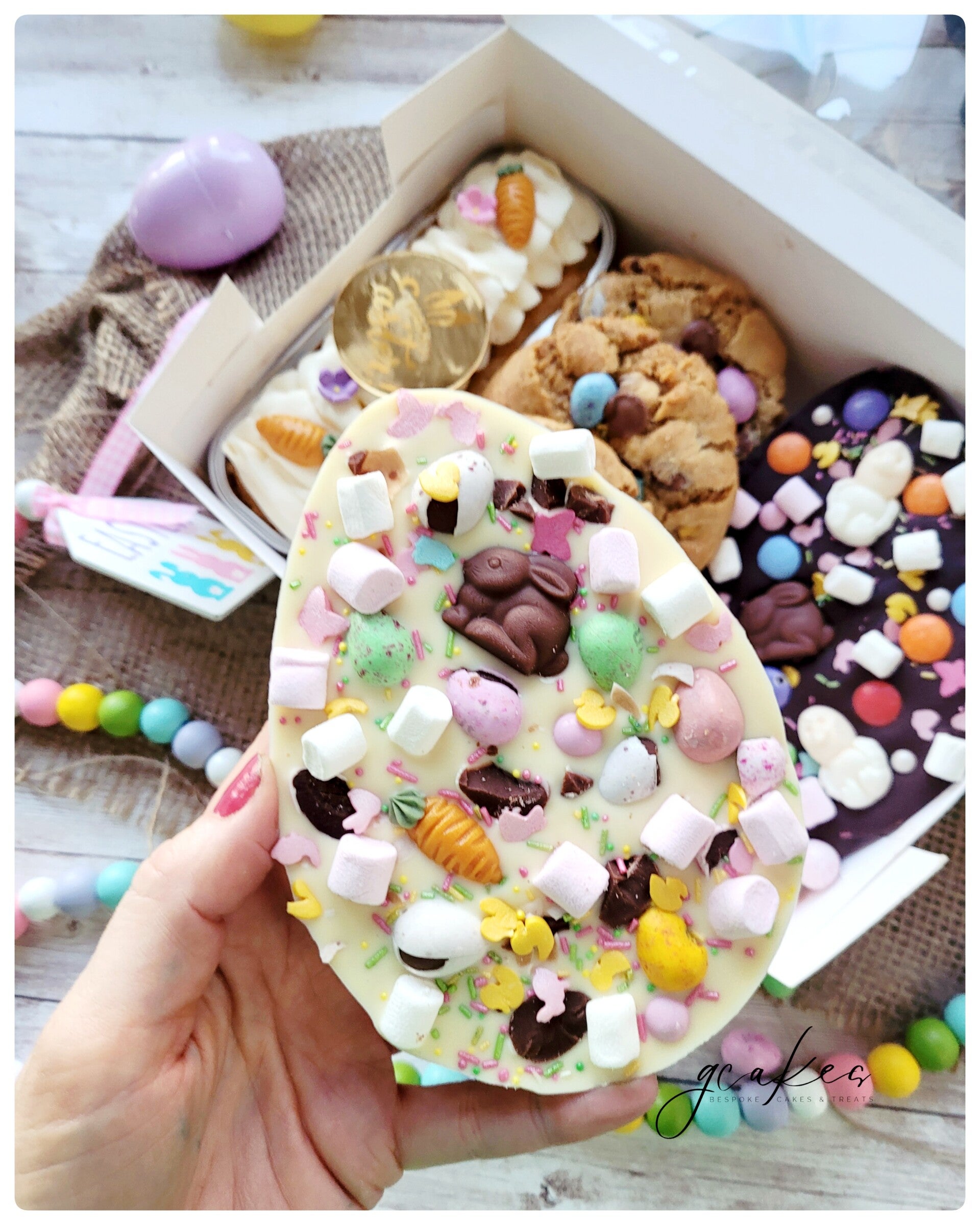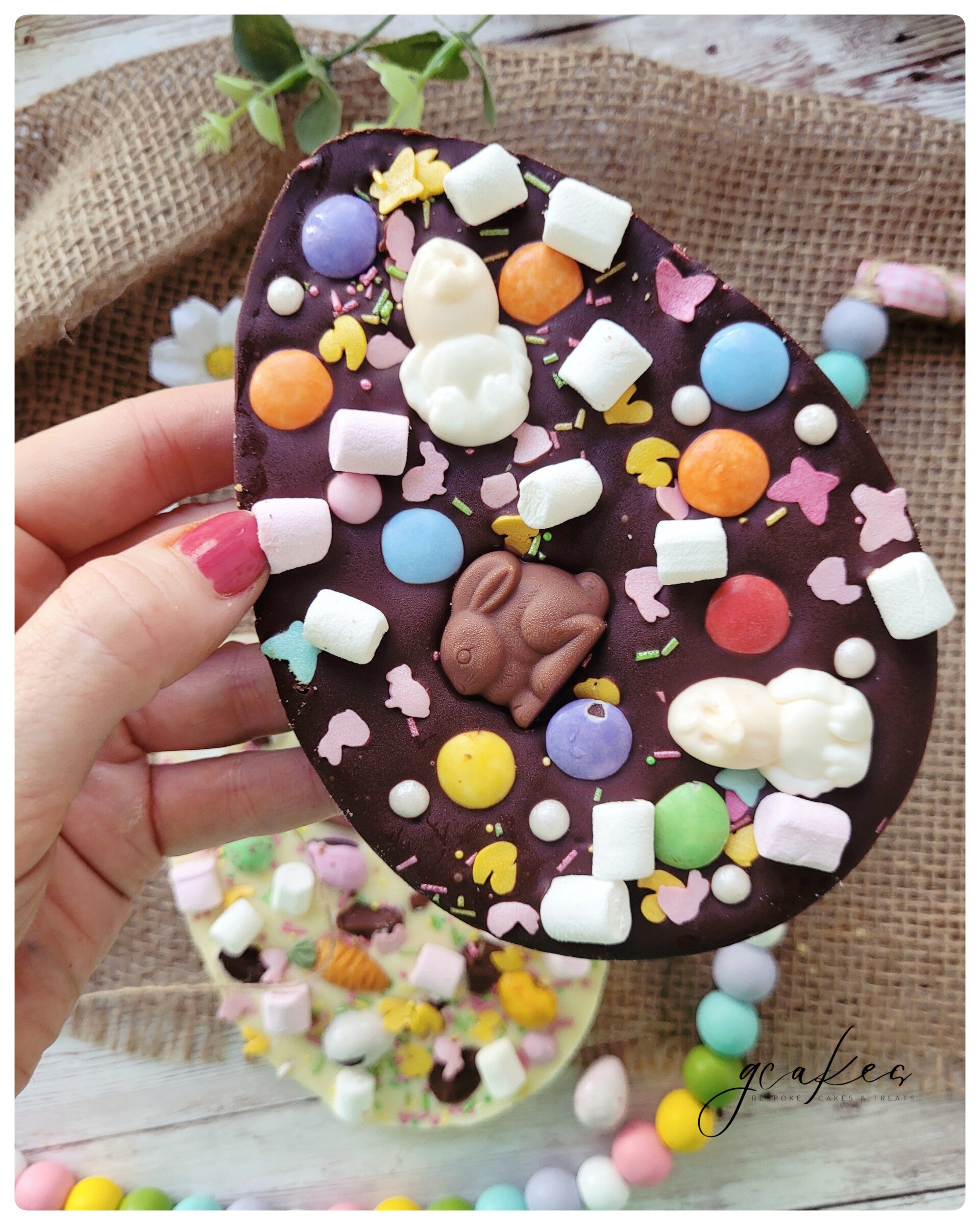 Something different but SO fun! Each of my Belgian Chocolate 'Easter Egg' Slab come highly decorated with mini marshmallows, mini eggs, Smarties, chocolate bunnies, carrots & sprinkles ... FUN RIGHT?! (Don't be deceived there is ALOT of eating in these slabs!)