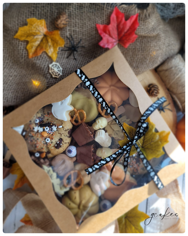 My Halloween Feast Boxes are jam-packed with a selection of tasty treats! These feast boxes are perfect for a cozy night in front of the T.V watching a spooky movie! Choose from small, medium or large! So what do you get inside each?