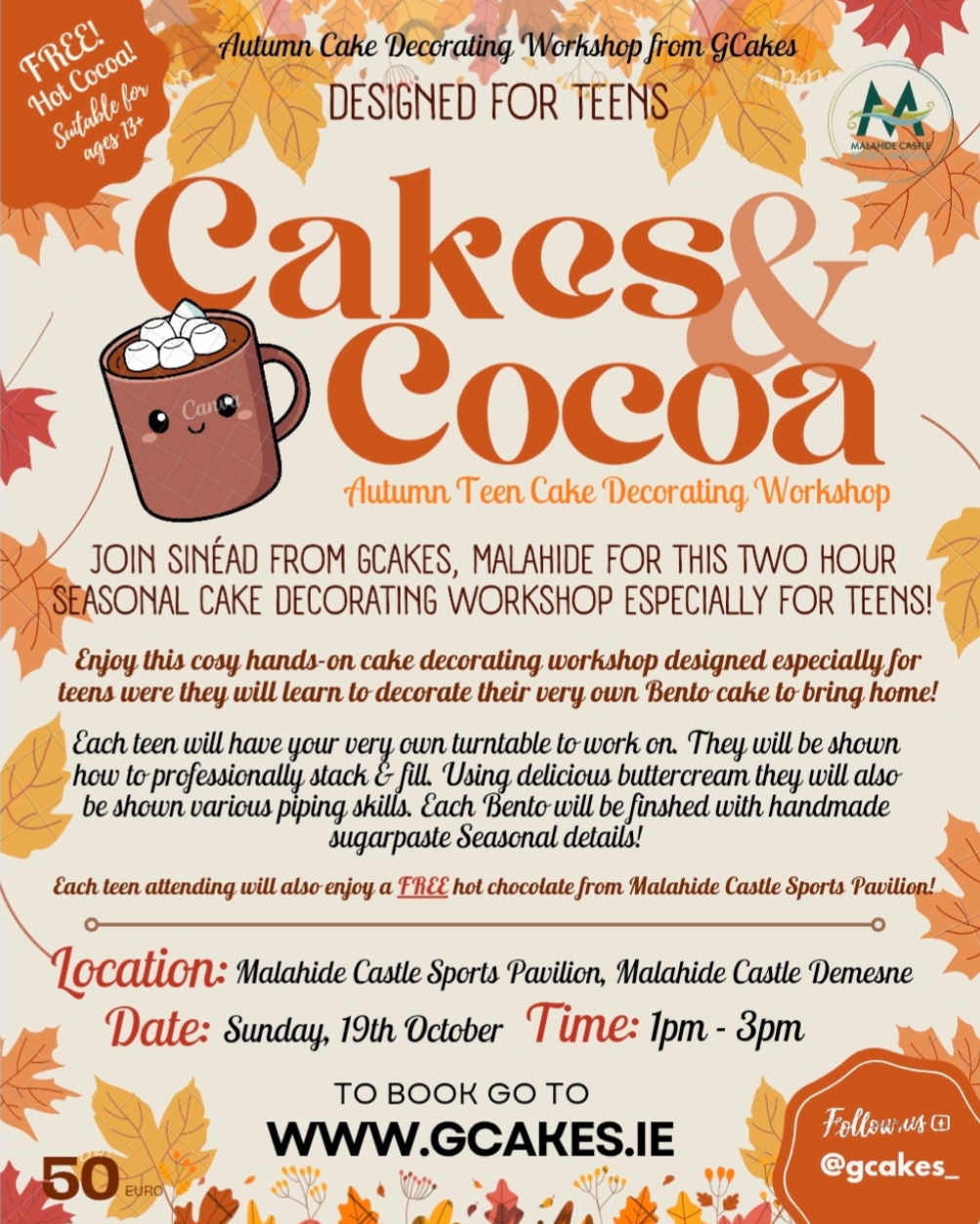 - FREE hot chocolate with marshmallows will be provided to each student during the class