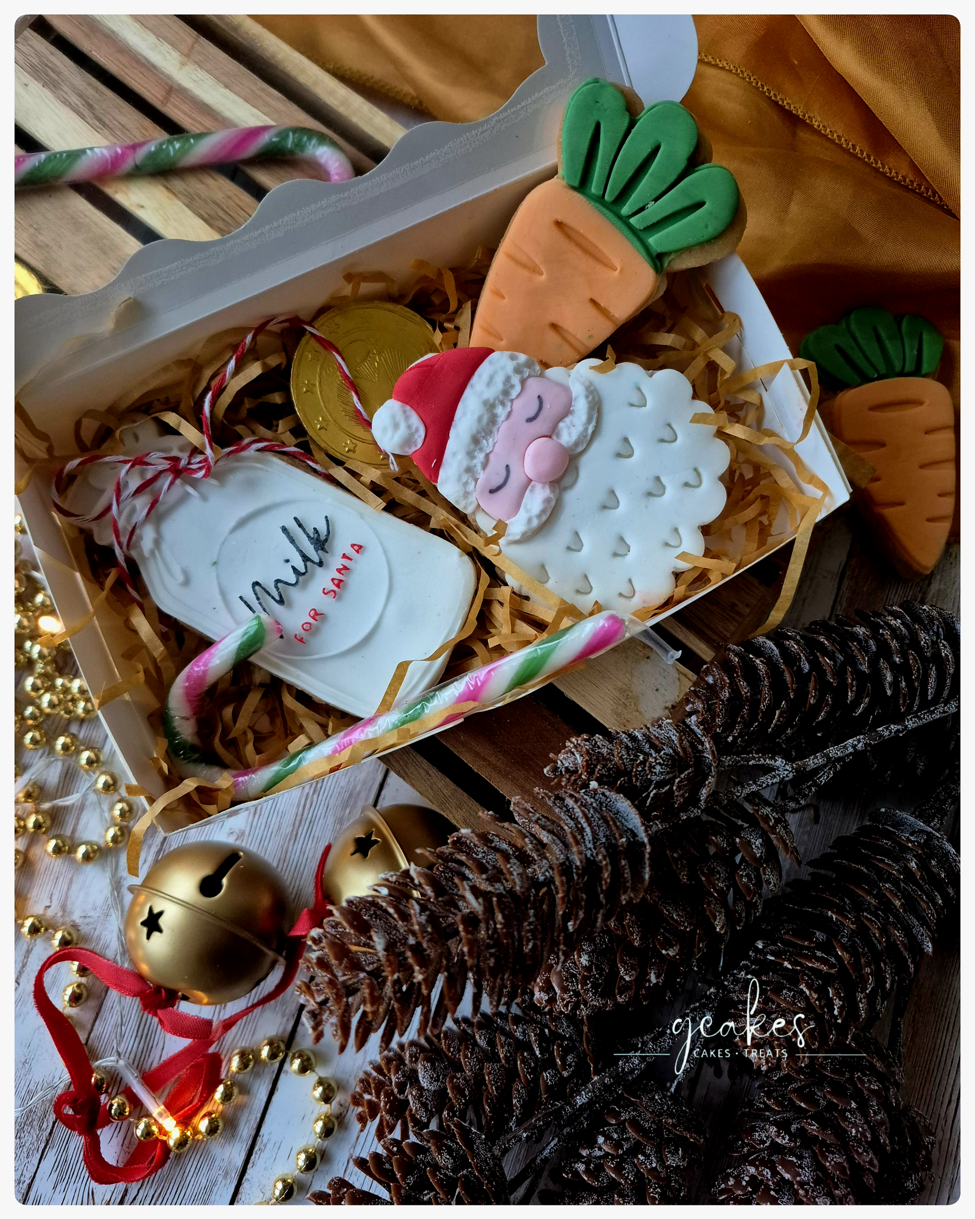 🎅🦌 Inside you’ll find a special cookie for Santa, a carrot-shaped cookie for Rudolph, 'Milk for Santa' cookie, candy canes and shiny chocolate coins. A sweet cookie box brings joy, excitement, and a sprinkle of North Pole magic to your holiday celebrations.